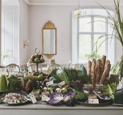 Åkeshof Slott har en stor kärlek till grönt! Natur, miljö och hälsa är viktigt. Slottet serverar nu mer helt vegetarisk frukost och lunch. Till middag serveras som tidigare kött och fisk. Mycket smak och näring sitter i grönsakerna, örterna och växterna. I det gröna köket läggs naturligt fokus på hållbarhet. I möjligaste mån används närproducerade råvaror från småskaliga gårdar och odlare.