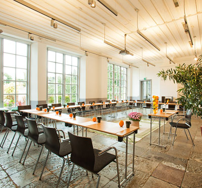 Upplev skön rymd i Orangeriets möteslokal med plats för 50 personer i biosittning. Stora spröjsade fönster, högt i tak, stengolv och vita väggar ger mötet en känsla av frihet och upprymdhet. Här finns möjligheter! På Slottet finns mötesrum med ombonad interiör och djupa dimensioner.