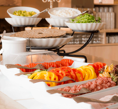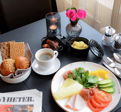 På På Best Western Plus Park Airport Hotel läggs stor vikt vid gruppens måltider som planeras speciellt av hotellets köksmästare. Under kaffepauserna dukas även en mängd olika förfriskningar upp för att gruppen ska få maximal energi. Kaffe & bananer är alltid ekologiskt och de arbetar aktivt för att utesluta palmolja i den mat som serveras. Den dignande frukostbuffén, som erbjuder alltifrån dagsfärskt hembakat bröd, nytta juicer och smoothies, till klassiker som bacon och ägg, dukas upp redan klockan 04.00.