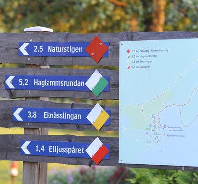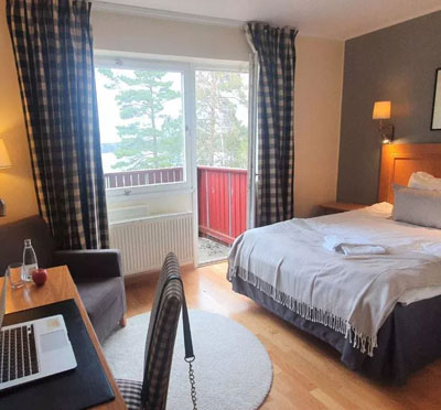 Hotellrummen är placerade i fyra byggnader på området samt stugor. Varför inte både bo och konferera i Erlandervillan. Villan är uppkallad efter Tage Erlander, Sveriges statsminister under perioden 1946 – 1969. Villan var i många år hans och fru Ainas hem. Idag är den varsamt renoverad med 5 sovrum, sjöutsikt och egen bastu.