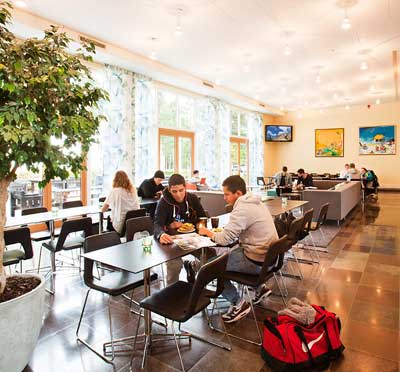 I imponerande Olympiarestaurangen ger Bosön gott om hälsosam energi till sina konferensgäster. Buffé för både lunch och middag, alltid med tre alternativ så att alla smaker kan hitta något som passar. Matsalen blir en samlingsplats för samtliga besökande grupper – företag såväl som idrottare – och atmosfären som tar form är levande och bejakande.