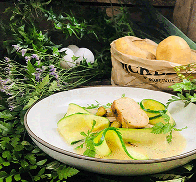 Våra duktiga kockar lagar all mat från grunden på fräscha råvaror garanterat fria från tillsatser och huvudsakligen från ekologiska gårdar. Vi vill ge gästen en genuin smakupplevelse med god och rättvis mat och kärleksfullt odlade grönsaker.