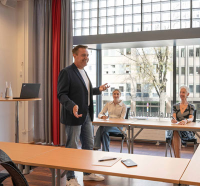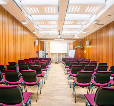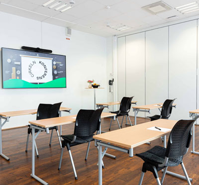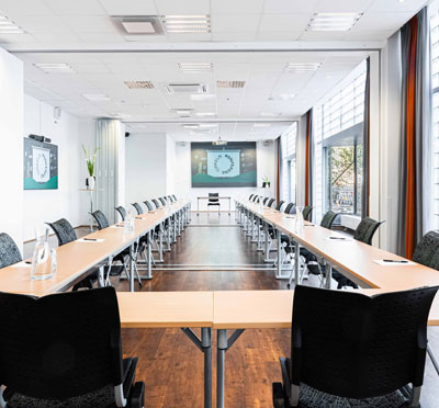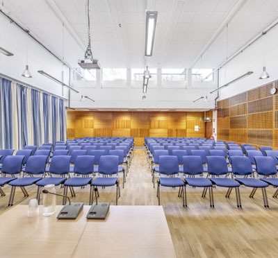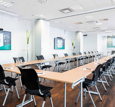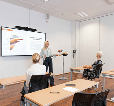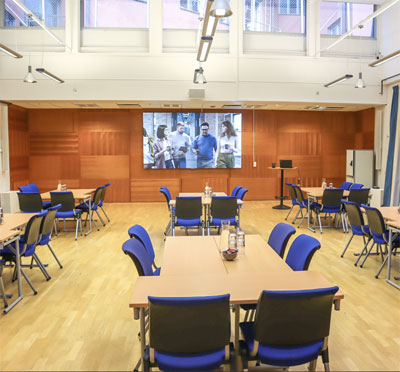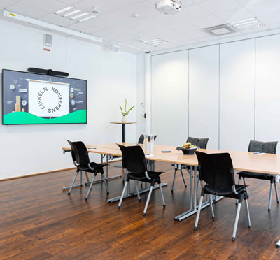 En mänsklig, vänlig mötesplats med sju fantastiska möteslokaler fullt utrustade med bland annat bords- och handmikrofoner, headset, hörslinga, whiteboardtavla, filmskärm och storbildsprojektor.