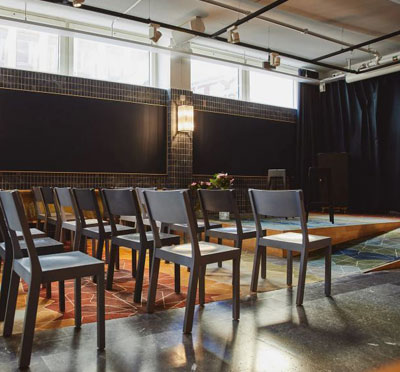 Vår största lokal, Zätasalen, har en lutande sittning med 338 stolar och en 70 kvm stor scen, ligger i direkt anslutning till en rymlig foajé på våning 1.