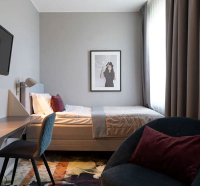 Vi erbjuder generösa logialternativ för grupper, med smidig in- och utcheckning, gemensamma ytor och närhet till både city och kommunikationer. Flygbussen stannar precis utanför hotellet, och tunnelbana samt pendeltåg finns inom gångavstånd – perfekt för grupper som reser in från olika håll.