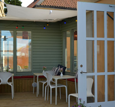 Intill terrassen ligger en härlig liten park med samma häpnadsväckande utsikt som från terrassen. Här får man gärna arrangera lekar och annat skoj i samband med sin fest. Vi hjälper er gärna att förmedla band och DJ samt andra kontakter gällande aktiviteter.