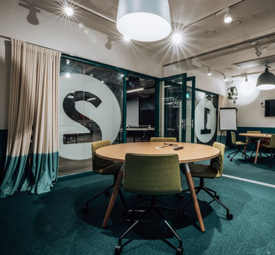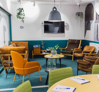 Lokalerna färgglada design uppmuntrar till kreativa möten där nya idéer kan kläckas!