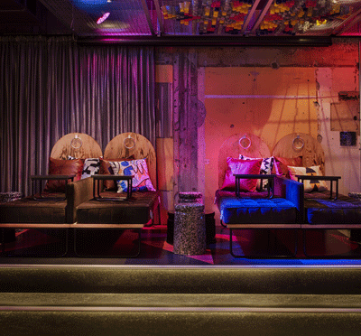 Lokalen är utrustad med DJ-bås samt scen.