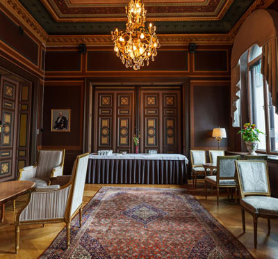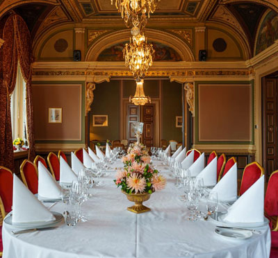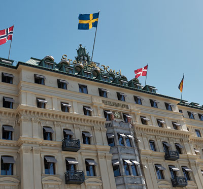 Grand Hôtel i Stockholm Stockholms flaggskepp i hotellväg kan man tacka Régis Cadier för, som 1874 bestämde att Sverige behövde ett konkurrenskraftigt hotell i huvudstaden som svar på övriga Europas högkvalitativa marknad. Resten är historia, om än en brokig och händelserik sådan - ägarna har nämligen kommit och gått på rad (inte alltid av fri vilja: i Stockholms blodbad strök en och annan med, men nu är det stabilare på den fronten). Grand Hôtel har utvecklats i sin storslagenhet till yppersta världsklass! Logi Fånga ett ögonblicks avkopplande vila i något av hotellets rymliga sovrum där nattgästen får hämta nya krafter i elegant inredda rum med exklusiva färger i silver, svart och kungliga nyanser av blått som är smakfullt förenade i personliga interiörer. I dessa väl ombonade sovrum blir sömnen ett behaglig upplevelse i hemkänsla, fast med extra guldkant såklart! Lokaler Arbetet blir en angenäm upplevelse i någon av Grand Hôtels ståtliga konferenslokaler. Hela 18 mötesrum bjuder plats åt upp till 650 personer och den största (Vinterträdgården) sträcker sig över grandiosa 800 kvadratmeter. Lokaler finns att tillgå i 1700-tals- eller modern stil beroende vilken känsla man önskar ge konferensen. Mat & dryck Om inte det vore nog så eskorterar Grand Hôtel in sina gäster till en storslaget vacker matsal, där utsökta måltider serveras i underbar atmosfär. Ovan spänner sig ett välvt tak med pampiga motiv och praktfulla dekorationer, och gästerna sitter i ljuset av en magnifik kristallkrona. Till lunchen dansar dofter av svenska rätter graciöst fram i salen; smaker som lagas i enkla kombinationer men med fantastiskt resultat. Här väljer man själv vilken nivå på lyx man önskar bland en rad menyer. Middagen sedan går i praktens tecken med enastående råvaror som har förmågan att överraska den mest kultiverade smakpaletten. Aktiviteter När mötet är avklarat behöver inte den där sköna konferenskänslan dö ut, utan man kan förlänga den med en rolig aktivitet som belöning för hårt arbete. Förtjusande smakprovningar av vin, champagne och whiskey, eller skön avslappning i den sagolika spaavdelningen som går i härlig skandinavisk stil – valet är stort. Dessutom dukar det geografiska läget fram en dignande buffé av nöjen signerat Stockholm stad. Läge Håll utkik efter en stolt och extraordinär byggnad utmed Strömkajen, och det är svårt att hamna fel. Med Gamla Stan och slottet på andra sidan kajen står Grand Hôtel redo att betjäna sina konferensgäster från första parkett.
