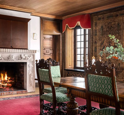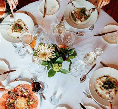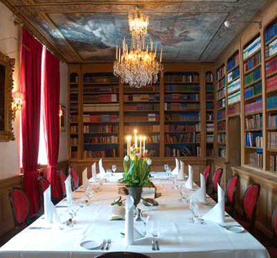 Gotiska eller Gyllene matsalen till middag? Eller någon av de andra tre som finns på slottet? Miljön är angenäm i vilken som - Varje måltid är mer eller mindre som en liten fest på sitt sätt! På sommaren är slottsterrasen lite extra lockande.