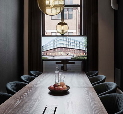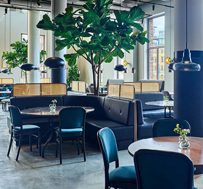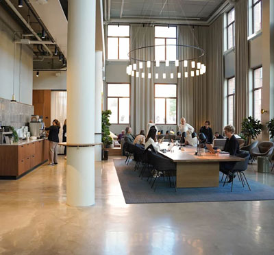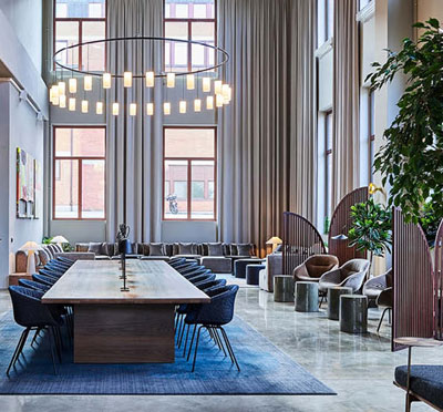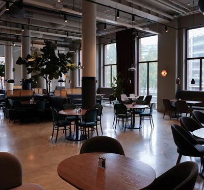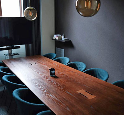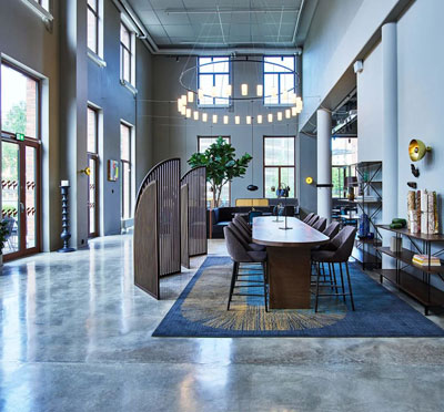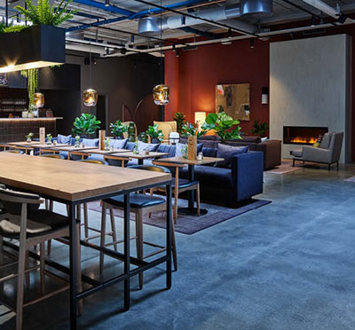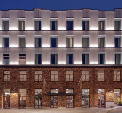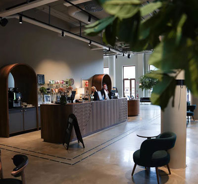 Hotellet, som är inrymt i en gammal tapetfabrik, kombinerar historisk atmosfär med modern design.