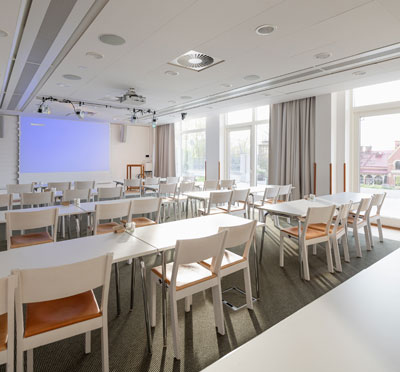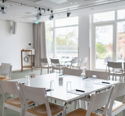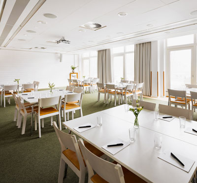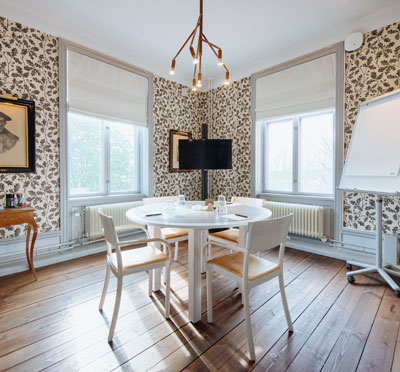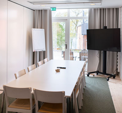 Sju är traditionellt ett lyckonummer, och visst bådar det gott för mötet! På Hotel J finns nämligen just 7 våningar i tornet från 1800-talet med 14 lokaler som självfallet är utrustade med all modern mötesteknik som man kan behöva. Snygga namn som Röda Rummet, Newport och Svensson Junior ger rejält med historisk känsla med tidsenlig inredning och dekor. Max 90 deltagare går in i största lokal, och samtliga mötesrum kan möbleras om till full belåtenhet.