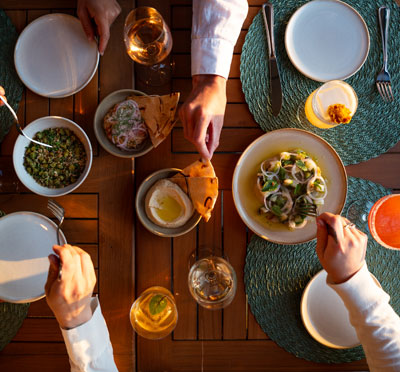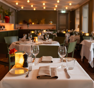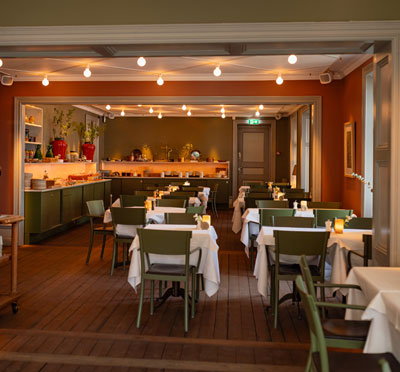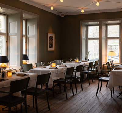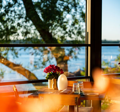 Havet simmar ända in i restaurangen och dukar upp sig i rätter med mycket smak av oceanen och skärgården. Menyn går helt i linje med interiören på Hotel J och skapar en komplett helhet. Dessa läckerheter från under ytan samsas med mer välkända svenska landrätter för den som känner sig lite torr om fötterna.