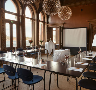 Hur lockande låter inte ett möte i Skridskopaviljongen eller i Sjöofficersmässen? Det förra är ett litet tegelslott i miniformat med torn och fina fönster, medan det senare är en är en festvåning för alla slags sammankomster. Upp till 100 personer kan konferera i Hotel Skeppsholmens lokaler, som är 8 till antalet. 3 större möteslokaler och 5 grupprum!