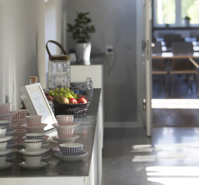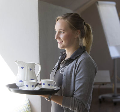 I alla nya konferenslokaler erbjuds Wifi, dataprojektor eller stor bildskärm samt kontorsmaterial ingår alltid i lokalhyran. Stilla- eller bubbelvatten, frukt, frön & nötter och lite gott godis är något som också alltid ingår. I kaffepauserna bjuds ni på hembakat och en god kopp kaffe, naturligtvis i porslin från fabriken här.