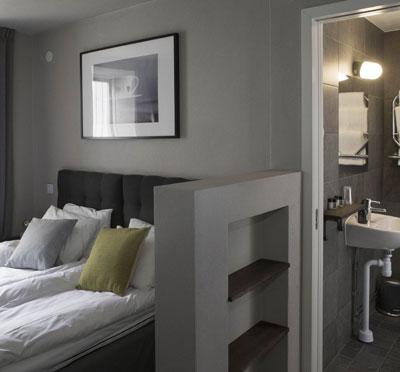 2017 byggdes 6 helt nya hotellrum som de valde att inreda med industrikänsla.