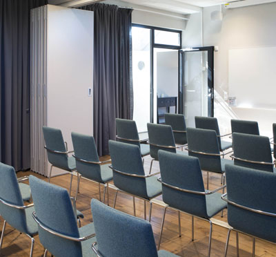 I det största mötesrummet Stig med utsikt över Farstaviken finns plats för 60 pers. Tyra & Lisa tar tillsammans 24 personer och om man drar för skjutväggen blir det istället 2 grupprum om 12 pers. I grupprummet Wilhelm kan man vara upp till 12 personer i styrelsesittning.