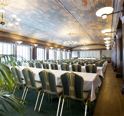 Om sovrummen på Hotell Hasselbacken kommer att imponera, så är det ingenting dagskonferensen behöver gå miste om. För minst lika storslagna, om inte mer, är mötesrummen. Hela 16 lokaler och 7 grupprum i gammaldags charm står redo att husera möten för upp till 220 deltagare. Den största, Hazeliussalen, har 230 kvadratmeter yta för bio-, skol- eller u-sittning. Vacker takmålning, gyllene lampor som sprider ett varmt ljus över mötet och en avlång rektangulär form, gör salen utmärkt för större möten. Varje konferenslokal har sin egen säregna stil, men samtliga är väl ombonade och noggrant inredda. Övriga lokaler har lika magiska namn som till exempel Dunderhyttan, Fredman, Gubbhyllan och Fågelsången.