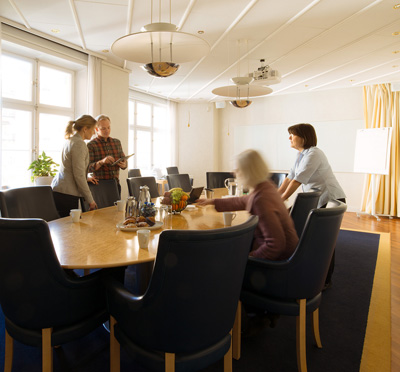 IVA Konferenscenter erbjuder totalt tio konferenslokaler och sammanträdesrum i olika storlekar. Här finns mötesrum anpassade för utbildningar, ledningsgrupper, frukostmöten och även den unika hörsalen Wallenbergsalen med plats för 150 personer.