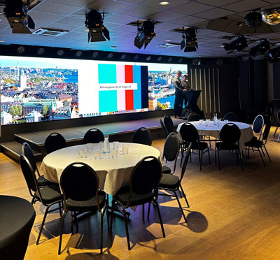 Anläggningen har modern teknik och den största lokalen, med plats för upp till 250 personer, har en LED-vägg som viskar 4K.