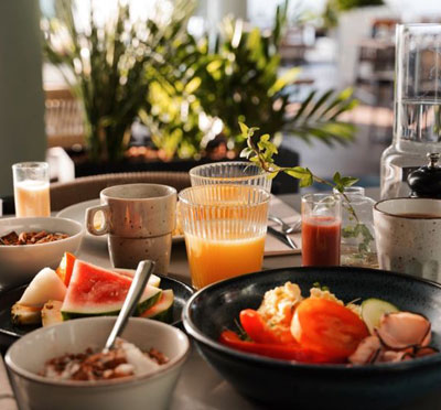 En frukostbuffé kan aldrig sitta fel, och absolut inte på Quality Hotel Arlanda XPO! Här vaknar gästerna upp till ett bord fullt av läckerheter som serveras i en stämningsfull restaurang. Här serveras även à la carte till lunch och middag, och upp till 240 personer kan sitta ned på en gång. Högtflygande rätter raddas upp på menyn där mycket ekologiskt fått ta plats – gott för både gom och natur.