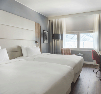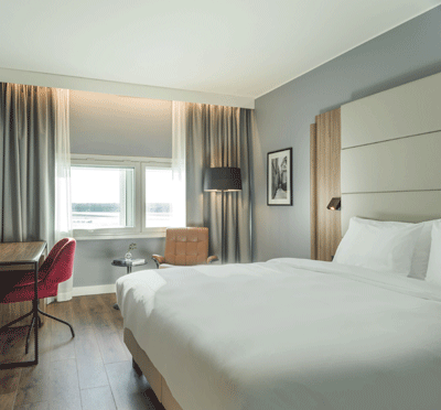 Under ert möte bor ni i ett av hotellets 260 bekväma rum som är utrustade med bekvämligheter för en trivsam vistelse. Restaurangen Horizon serverar brasserieinspirerade rätter och en fantastisk utsikt över landningsbanan. Vill du ladda upp med ny energi i form av träning har du som gäst tillgång till vårt gym dygnet runt.