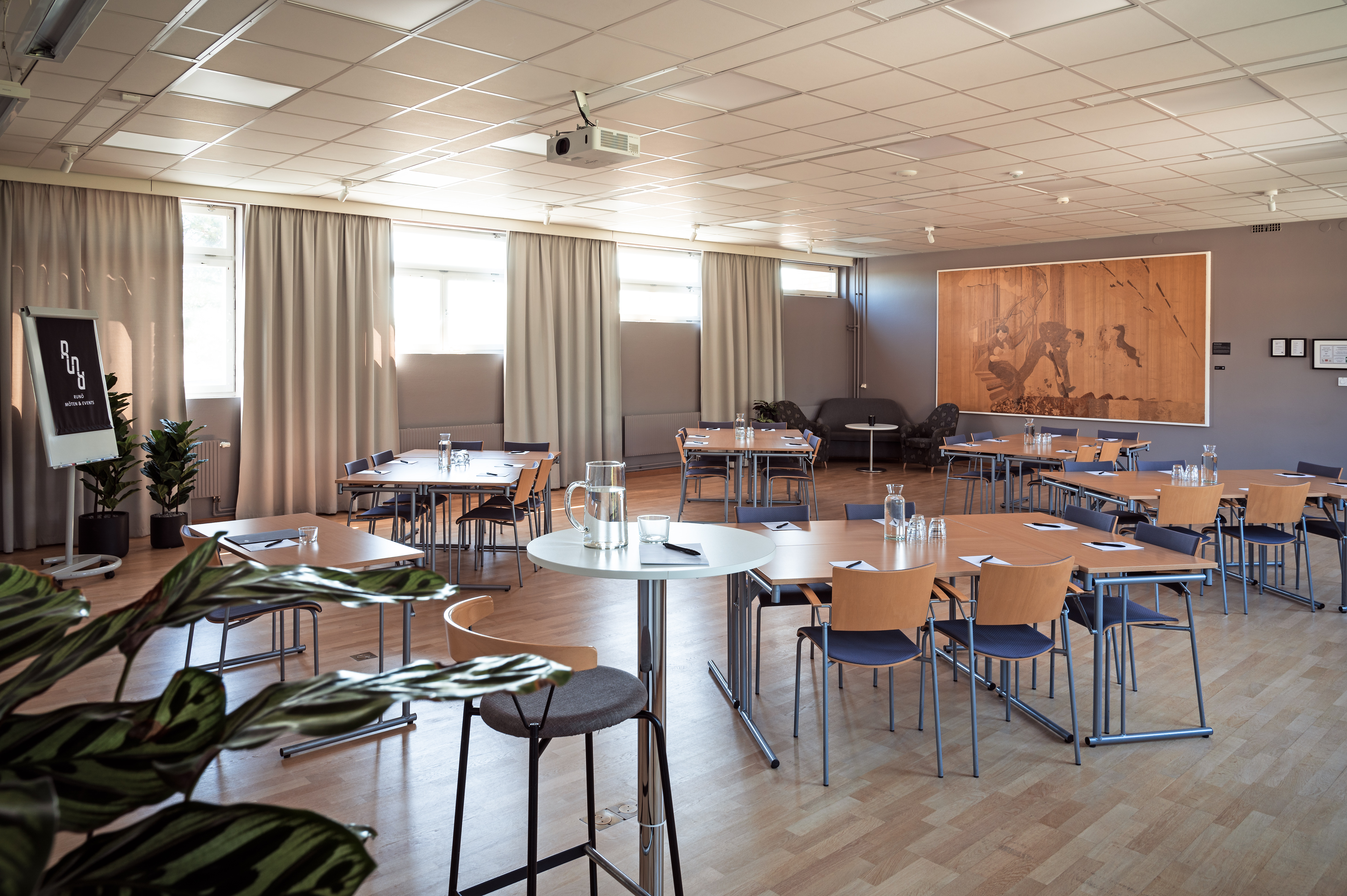 För de större sammankomsterna finns Runöhallen, en flexibel eventlokal på 800 kvm, perfekt för mässor, lanseringar och festmiddagar.