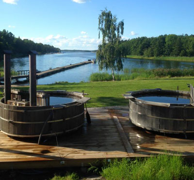 Vill ni ha en mer rofylld aktivitet - boka deras härliga vedeldade badtunnor som ligger nere vid vattnet.