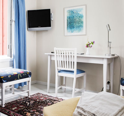 Rummen är ljusa och modernt utrustade med dusch, LCD-TV, skrivbord, hårtork samt Wi-Fi.