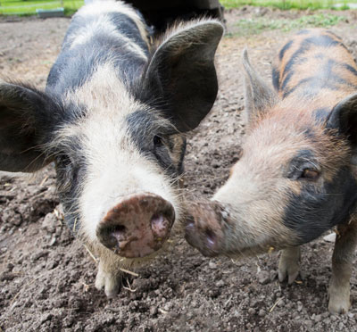 Skeviks Gård har också egna djur som bin, grisar och höns. Under sommarhalvåret finns också ibland kor och får betandes på gården. Många av djuren är svenska lantrasdjur som syftar till att bevara dessa sorter och dess mångfald. Djuren mår riktigt bra under hela sin livstid och är året runt frigående både ute och inne – allt efter vad de själva önskar.