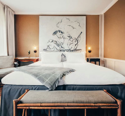 I de 49 rummen finner man ett genomgående koncept i inredningen, fast med individuella detaljer som får sätta prägel och ge karaktär till varje enskilt rum. Generöst tilltagna sängar, skrivbord och andra bekvämligheter återfinns i alla rum och garanterar en god vistelse för alla gäster.
