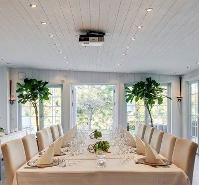 - Sveriges vackraste konferenslokal - Strandrummet - med öppningsbar glasvägg mot vattnet och öppen spis